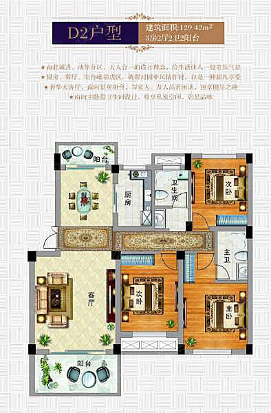 3室2厅2卫-玉虹·中央公园D2户型图