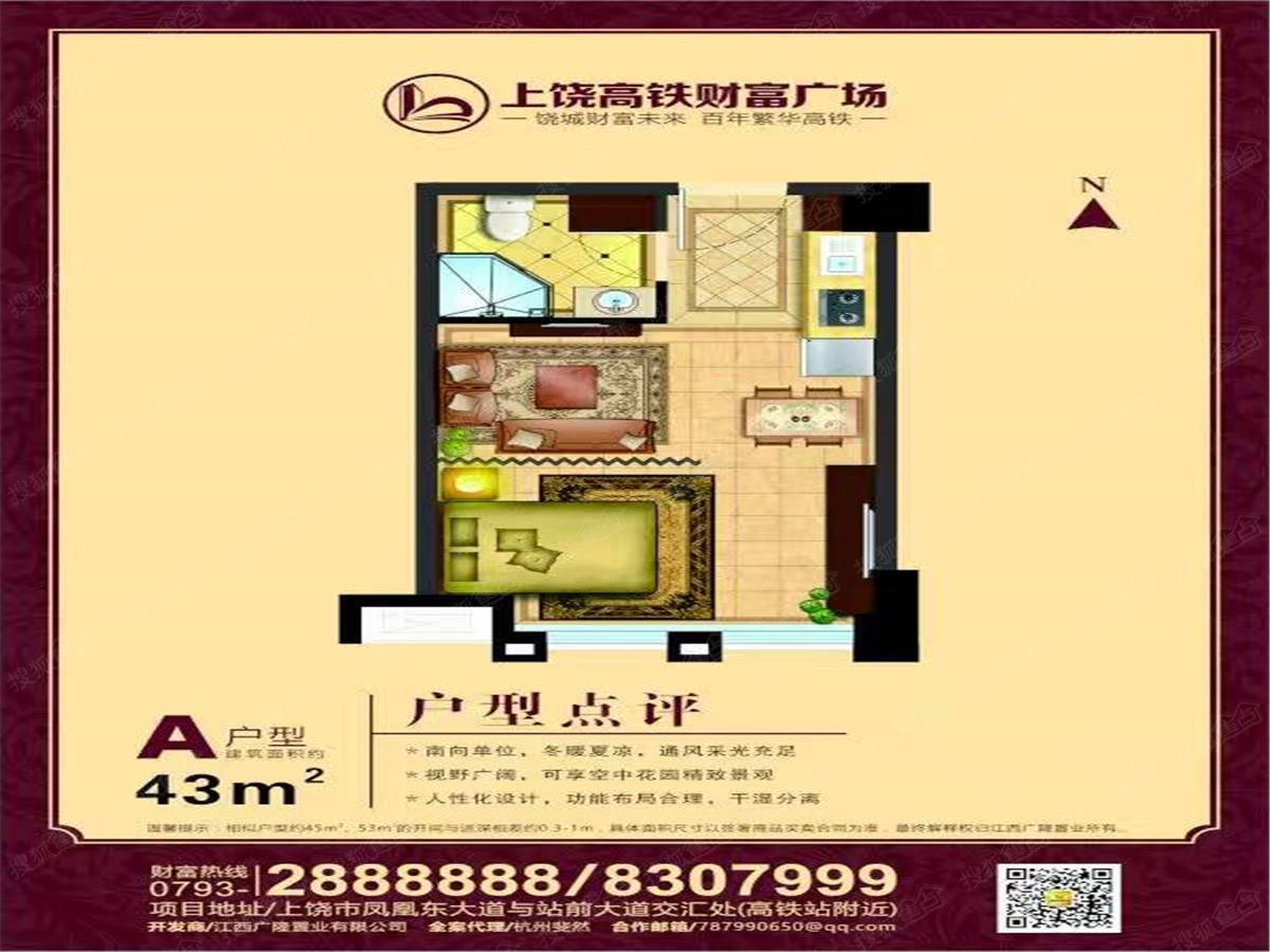 上饶高铁财富广场项目占地面积28373.5㎡,建筑面积142811.38㎡,高铁财富广场由6栋产品组成,涵盖4万平方商铺、公寓、写字楼、酒店,项目旨在打造一站式投资理财综合体,属于城东高铁经济圈,是未来财富的集聚地。