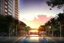 生态全景绿岛,阳光社交草坪,下沉式会客厅,露天海水泳池