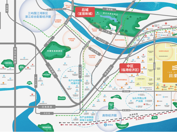 周边公园:凤岗湿地公园 、凤岗古城、南山湾、龙虎湾、巨峰风景区、青云岩山地休闲区、达濠古城、滨江生态休闲走廊(规划)江边公共绿地(规划);