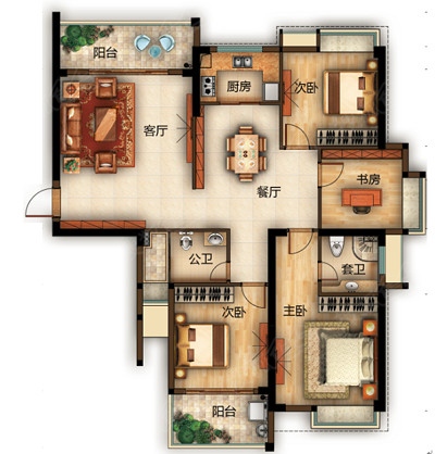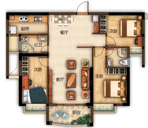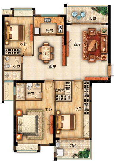 0室-三房两厅两卫户型图