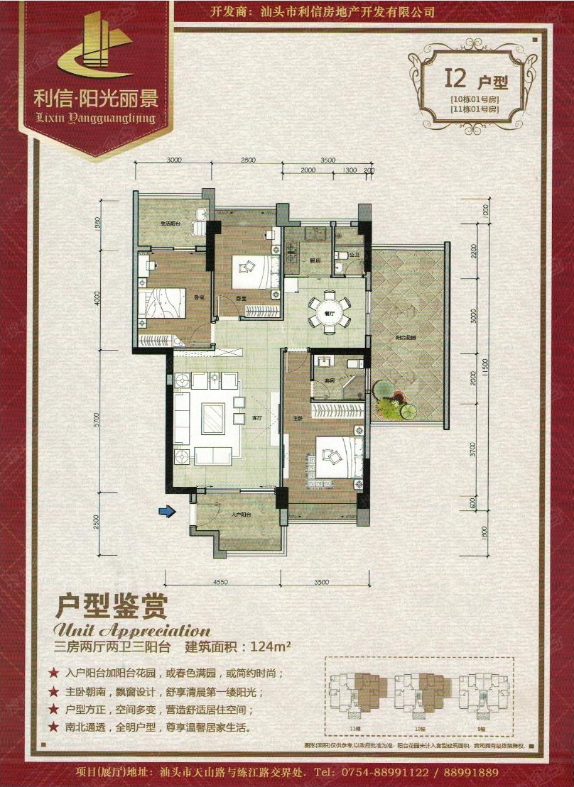 利信·阳光丽景由汕头市利信房地产开发有限公司开发建设,位于汕头市龙湖区天山路与练江路交界处,交通便利,小区周围生活设施齐全。