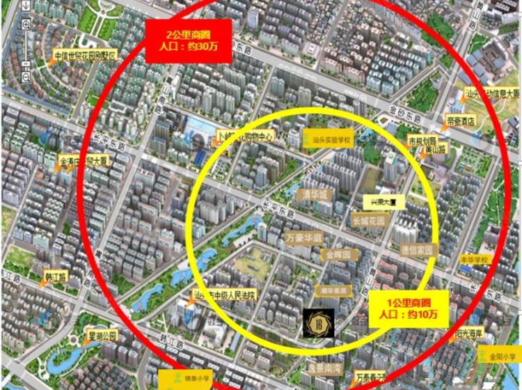位于汕头东区核心商圈,项目周边醇熟高档社区密集,学校、酒店、银行、写字楼、市政广场等配套完善。