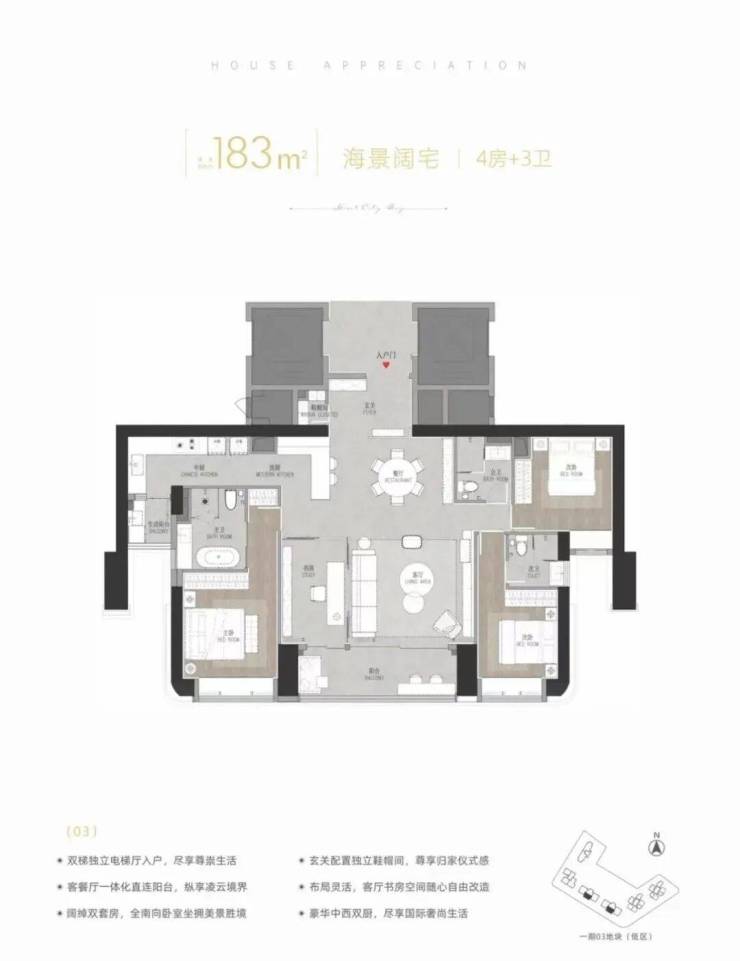 约200m超高层视野下的天际居所,私享珍罕城市山海美景,高端服务与精粹配套,打造环湾顶点之上的滨海都会生活范本。