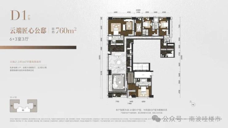 ◎建面约760㎡ 6+3室3厅,云端匠心公邸