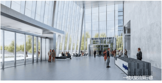 1楼约13.5米光影大堂,满足接待大厅、商务洽谈区、休闲等候区多场景使用需求,提示企业形象;