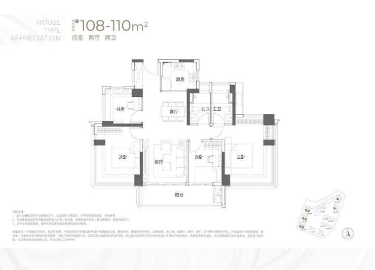 建面约108-110㎡4房2卫