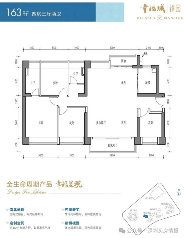 三单元:56F 3梯4户 96-163㎡3-4房;