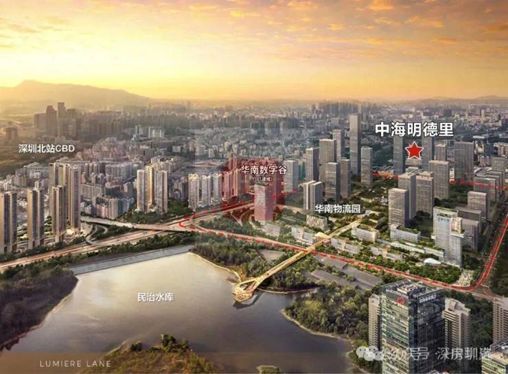 2)北站国际商务区,深圳六大总部基地之一,高投入打造国际化城市会客厅;项目距离深圳北站直线约2公里,所在民治街道是龙华目前发展的核心区域;