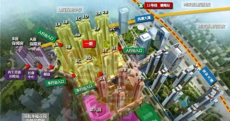 悦章凤凰里位于宝安大洋路与塘新路交汇处西侧,项目毗邻立新湖公园,距离地铁11号线 “桥头站” 的周围,用地类型为 教育用地+公共绿地+R2二类居住用地。