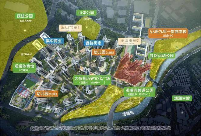 金光华溪山禾玺二期总建面约120万㎡,集住宅、商业、教育、文体和生态环境于一体。首发地块溪山禾玺首府已入市,454户建面约72-95㎡3-4房,备案均价约4.4万/㎡;此项目也还有大量的住宅货源,并与观城项目邻近。