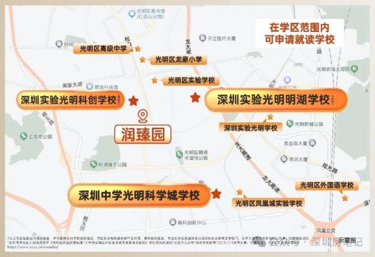 大城规划3所九年一贯制学校:深圳实验光明明湖学校(已开学,2025年9月)、深圳实验光明科创学校(在建中,预计2026年9月)、深圳中学光明科学城学校。双名校学区,整个深圳都少见。小区内还配了幼儿园。