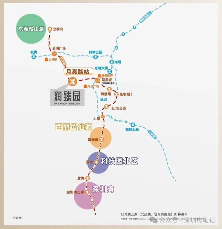 润宏城·润臻园,听名字就知道是润宏城二期的新项目。位置在光明区凤凰街道,松白路与东明大道交汇处。简单说就是13号线月亮路站地铁上盖,楼下就是地铁口。