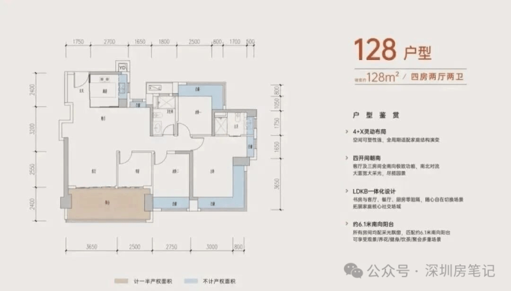 128㎡4房:396-430万,单价3.12-3.35万/㎡