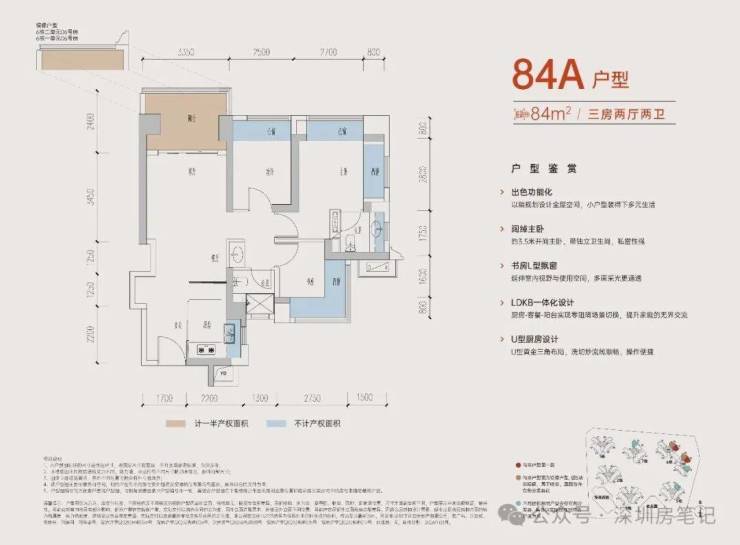 84㎡3房:256-269万,单价3.04-3.20万/㎡