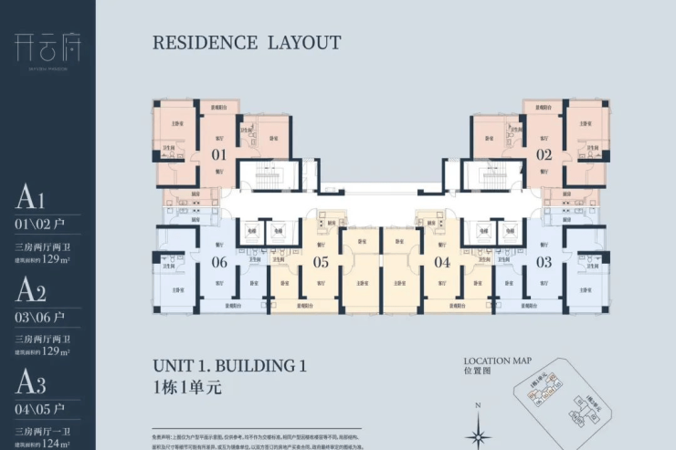 🔹1栋一单元A1、A2户型:面积约为129㎡