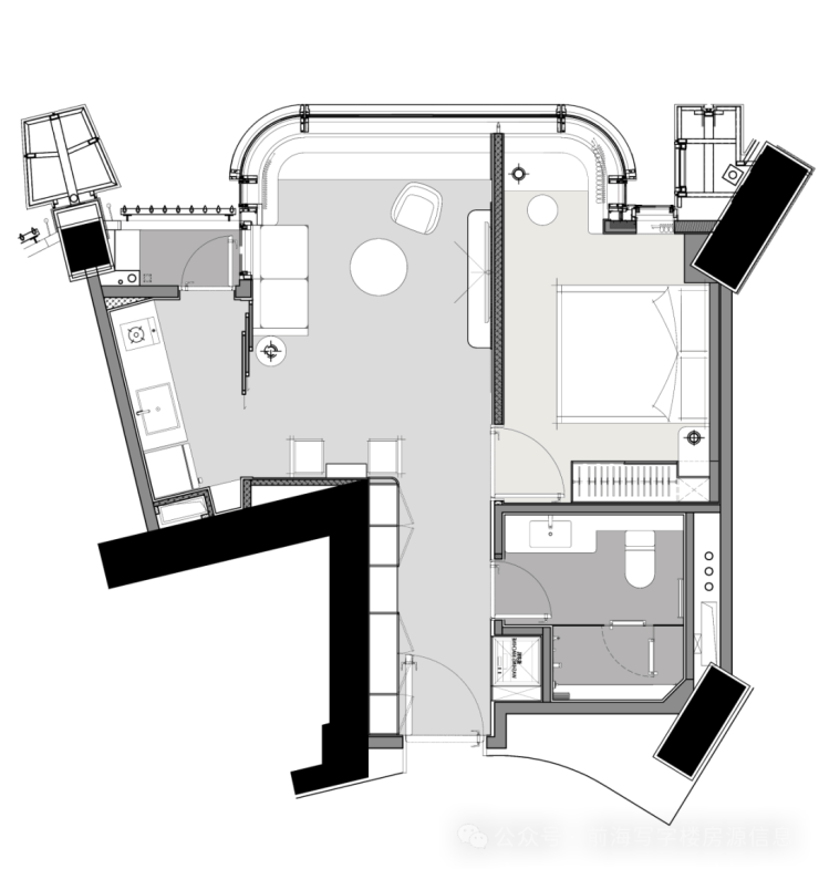 卧厅独立分区,休憩与社交动静分离