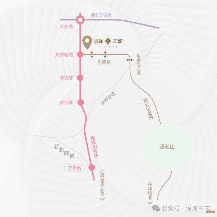 通勤效率,决定人生效率,纵向畅达坂雪岗、平湖、福田、罗湖;横向畅达南山、前海、坪山;雅园路直转坂雪岗大道。