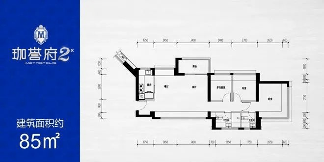 约85㎡( 横厅)三房两厅两卫