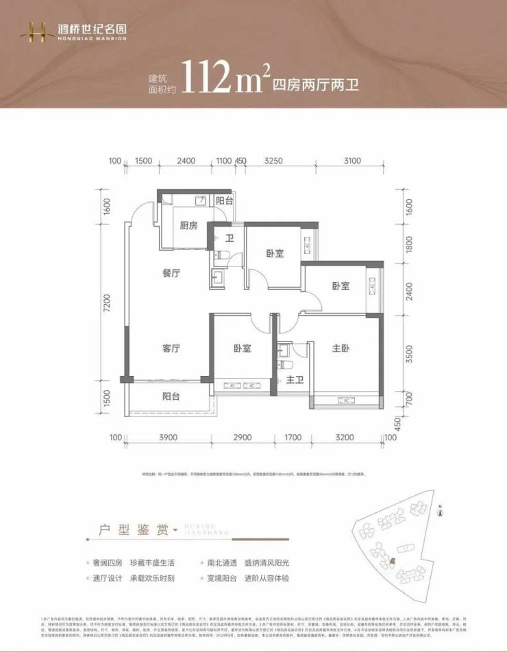 112㎡的4房2厅2卫:经典竖厅格局,客厅3.9米开间,LDKB一体化设计,4个卧室分别做到了3.2米/2.9米/2.55米/2.4米的宽度,L型厨房带1个小生活阳台,公卫三段式分离,东南朝向。