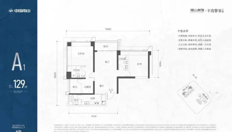 A1有两条腿,分别1-1栋01/02,主朝向是西北向,双龙抱珠格局。