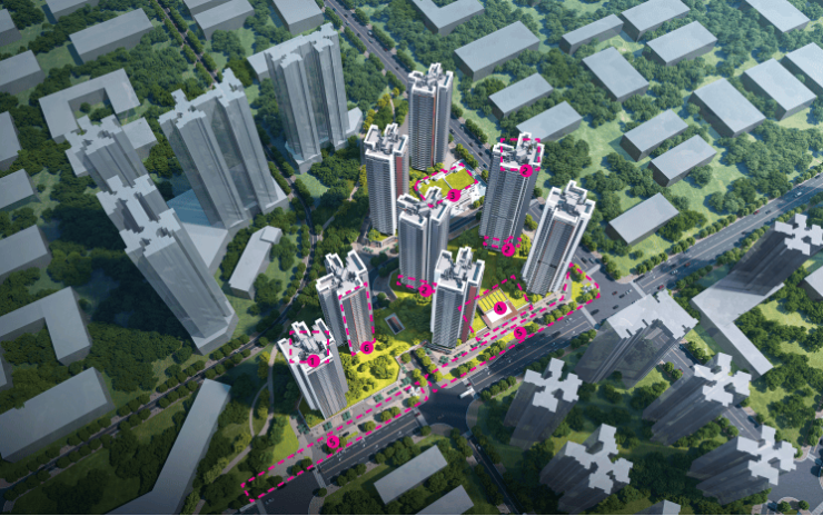 天健瑞云府,由天健集团+深福保+深高新集团3家国企联合打造,总占地面积约3.6万㎡,总建筑面积约22.49万㎡,计容建筑面积约16.46万㎡,容积率4.75,绿化率30%,共由8栋32-36层高住宅组成,分3个地块开发,不过花园都是共享连通在一起的,其中1栋1单元/2栋2单元/3栋1单元住宅33F,1栋2单元/2栋1单元/3栋2单元住宅32F,2栋3单元/2栋4单元住宅36层,4栋是1所9班制幼儿园。