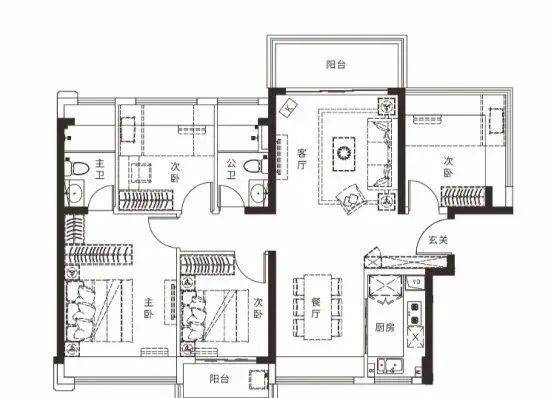 双阳台户次卧双面采光;
