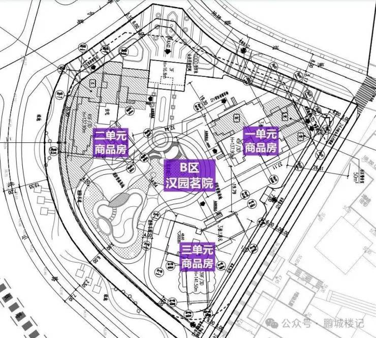 项目B区由3栋三个单元及裙房组成,其中一二单元层数45层,三单元层数39层,总户数474套,户型面积包括115-123㎡四房两厅两卫、160㎡四房两厅三卫、187㎡五房两厅三卫。