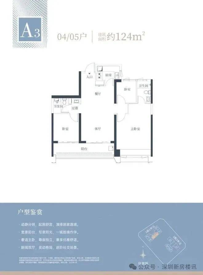 124㎡ 三房两厅二卫 单价5.5-5.8万/㎡