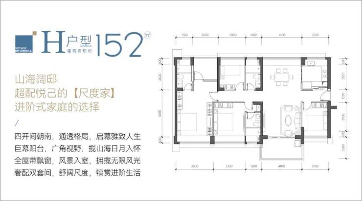 户型:主推98-152㎡三至五房,均为2梯4户,部分户型得房率88%-93%,户户朝南,部分可瞰山海。
