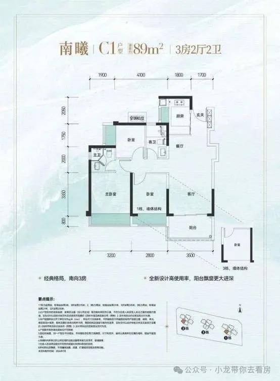 【户型】建面约89㎡3房2厅2卫、113㎡4房2厅2卫、141㎡4房2厅2卫