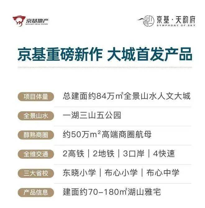 京基集团集30年城市地标打造经验,择址世界罗湖芯,匠造集湖山雅宅、金粹公寓、商务峯面、商业集群等多元业态于一体的总建面约84万㎡全景山水人文大城。首发之作京基·天韵府以超配大城建面约70-180㎡湖山雅宅,助推城市向新,刷新人居想象。