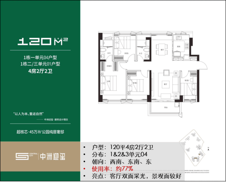 首推的「中洲迎玺」一期住宅层高30-47F,规划644户93-136㎡ 3-4房。