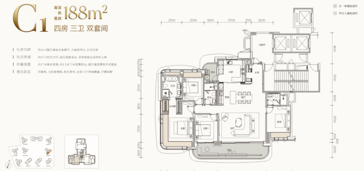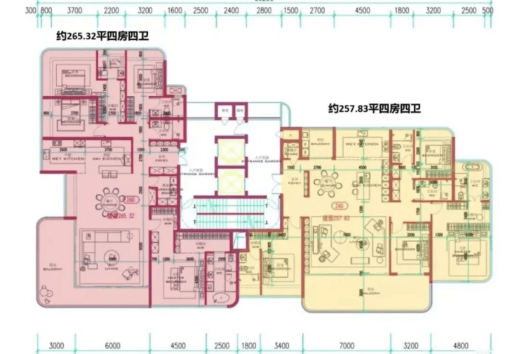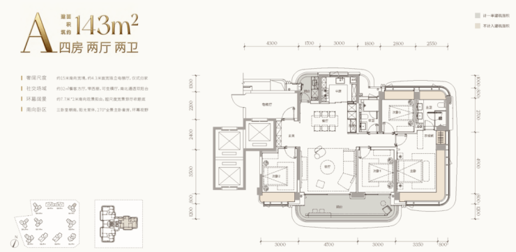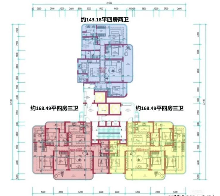 规划总户数约616户,首推1栋3-5-6-7单元,220套,约143-168-188-245-260-330㎡四房和顶楼约488平㎡户型。