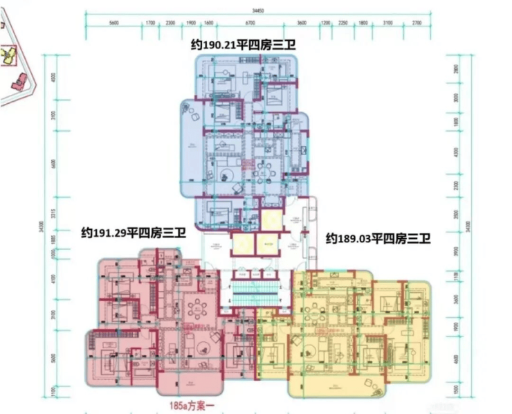 楼盘楼栋一共有12个单元,但4单元是社区门楼,其它11座是住宅,总高22-24层,楼高77-80米,2梯2户的标准层高是3.3米,3梯3户的标准层高是3.15米。