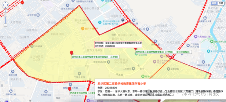 依据2025年龙华区教育局的学区划分方案,小学学区涵盖龙华第二实验学校华美校区及华仁华美校和华育校区;初中学区为龙华区清泉外国语学校初中部、龙华区新华中学教育集团初中二部、龙华区新华中学教育集团松和学校初中部、龙华区教育科学研究院附属外国语学校初中部。