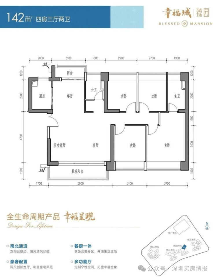 四单元:56F 3梯4户 96-142㎡3-4房;