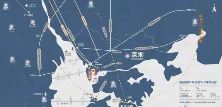超级湾区「粤港澳大湾区」——世界经贸集散地 再度于此勃兴,3大“世界级邮轮母港”、5大“千亿级国际空港”、港口货柜吞吐量约6800万标箱、机场货邮量超810万吨、机场旅客量约2.23亿人次。