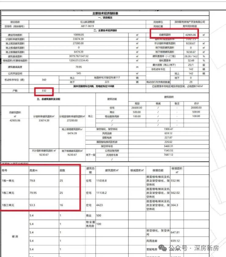 项目1栋1/2单元2梯6户,1栋3单元2梯4户设计,地下室有1层,规划360个车位,车位比1:1.08。