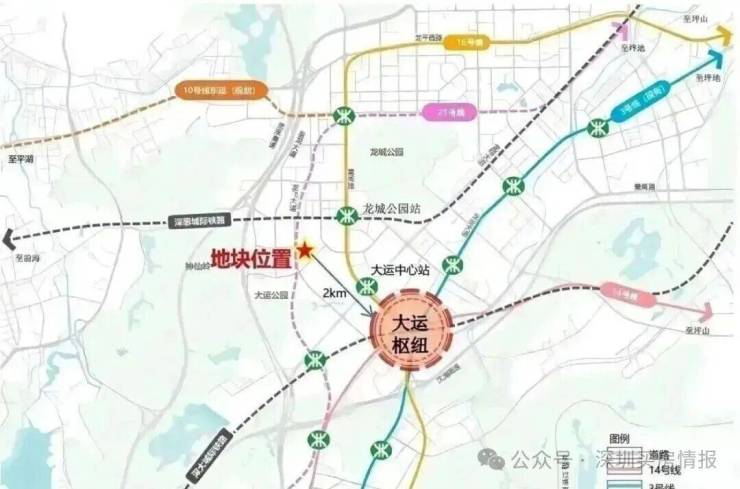 项目距离地铁16号线“大运中心站”约800米,步行约10分钟,1站可到达大运枢纽,快速换乘3/14号线,以及未来的深大城际;距离深惠城际“大运北站”约1公里,目前仍在建设当中,计划在2026年11月份通车。