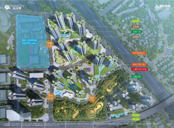 学校情况 项目自带1所9班制幼儿园,旁边规划在建1所九年制公办学校,目前已经透露是南方科技大学附属实验龙岗学校,在2025年秋季开学。