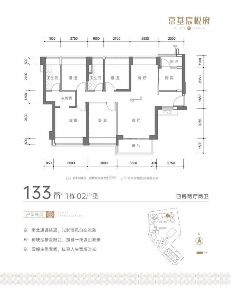 住宅主力户型:85/110—114/133—140平(三至四房)