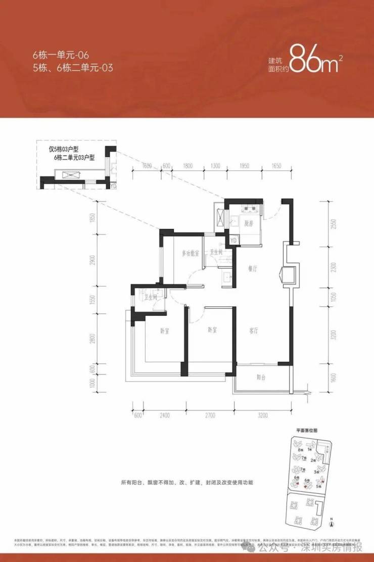 76㎡为最小户型三房一卫,85㎡的三房两卫,93-95㎡的三房两卫,150㎡的四房两卫,180㎡的五房三卫,目前