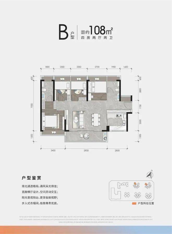 稀缺南北通透4房,约5.9米阔绰阳台,三分离卫生间