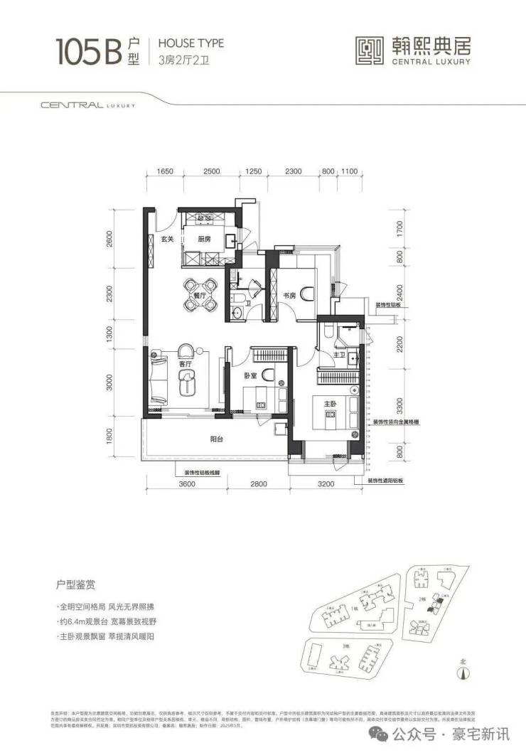 奢阔空间丨中心极境 礼献粤海 翰熙典居,粤海十年之后再上新,全新奢居综合体礼献峯层。可售主力户型新规后建面约105-140㎡奢雅空间,全明方正户型将空间奢阔感与生活舒适度完美契合。明星户型超6米阳台开间,全维度巨幕景观视野,尽揽湾心万千风景。