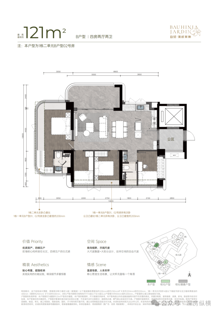 建面约121㎡开阔横厅高配四房;