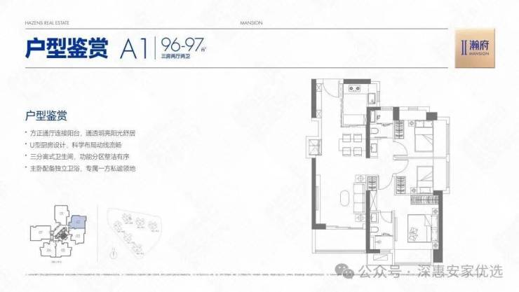 03/05/06(A2/A3)户型,竖厅三开间朝南格局,客厅3.5米开间,LDKB一体化,S墙设计预留冰箱卡槽位,主卧+1个次卧双飘窗。得房率约78%(不含赠送)。
