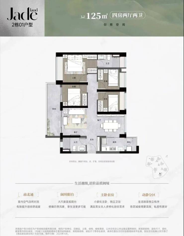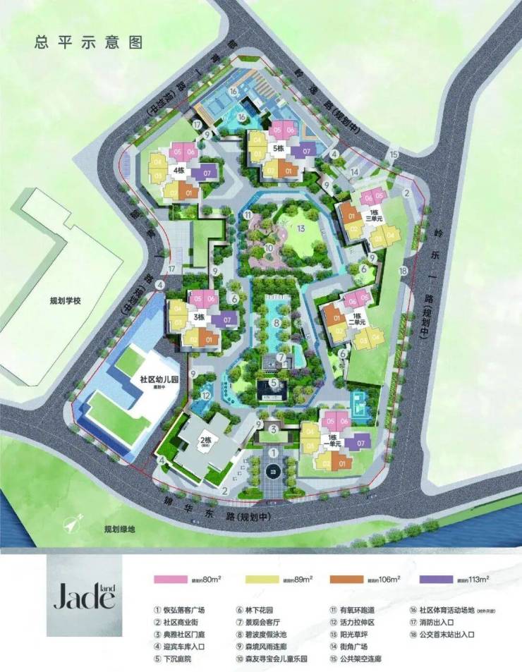 其中住宅约22万㎡(含回迁房)总户数2136户,停车位约2343个(车位比超1:1),商业、办公及旅馆业建筑约10.8万㎡,配套12班幼儿园,自带2.3万公共园林空间。