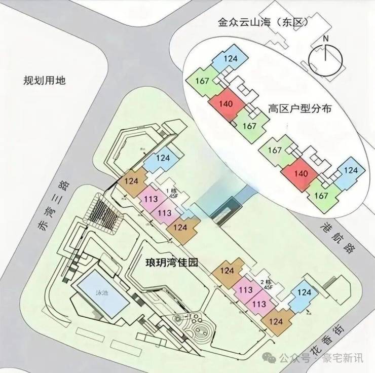 建筑规划包括2栋塔楼,其中高区采用4梯4户的设计,低区则为5梯5户,确保了每户都能享有独立电梯厅的配置。