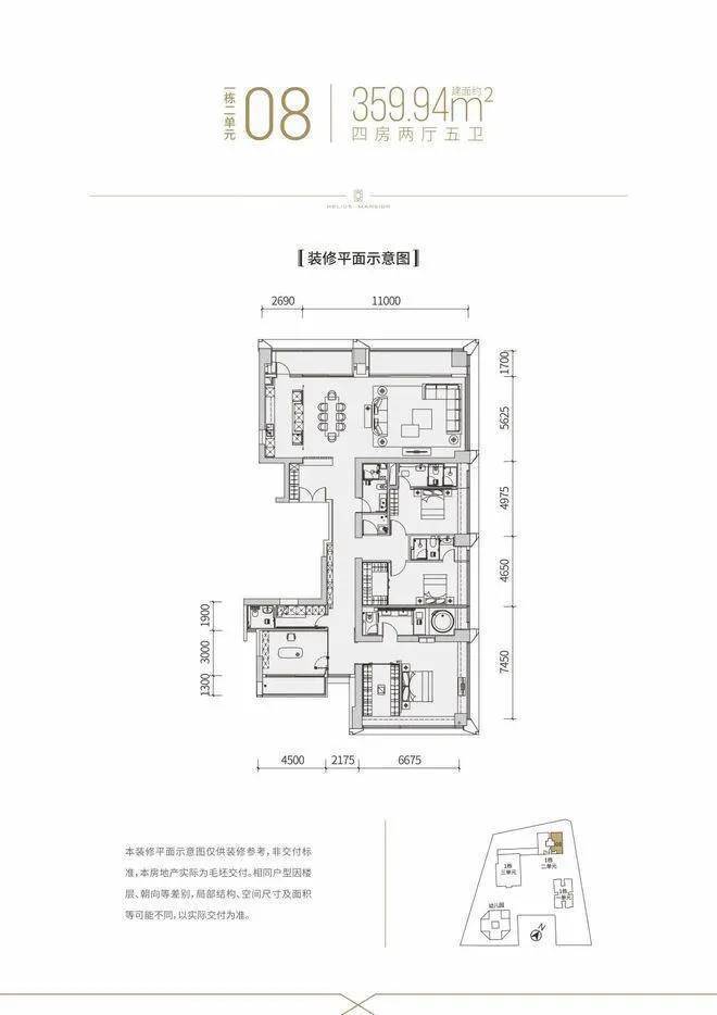 【建面约337平4房全套房+1工人房3厅6卫】